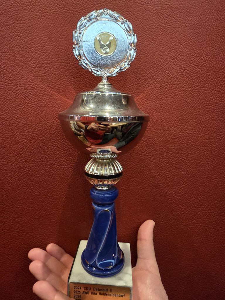 Stolz haben wir mit 2 Teams am Postpokalkegeln der SPD im Kohlpott teilgenommen und ja, wir haben den Pokal geholt. Leider nicht den Sieger-Pokal, der zum 4. mal in Folge an den Freibadverein Schwarzenbrink ging. Unseren Glückwunsch. Unser Pokal ist eher im Sinne des olympischen Gedanken zu sehen; Hauptsache dabei gewesen…